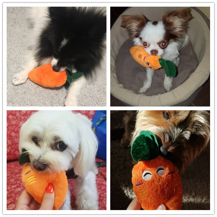 Pet Supply Soft Fleece Smiling Carrot Cute Dog Chew Squeak Toys For Small Dog Puppy Squeaky Plush Sound Cute Vegetable Carrot