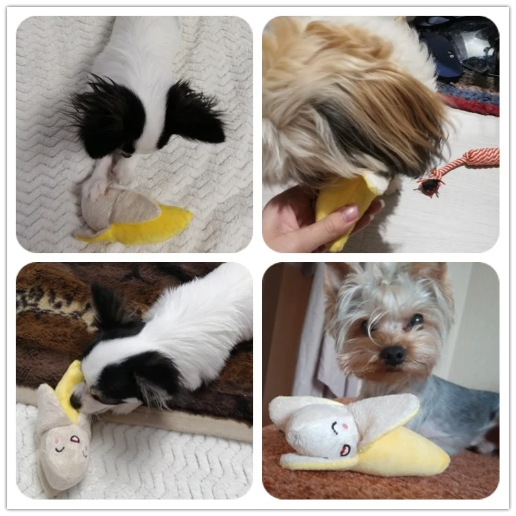 Pet Supply 1pc Plush Banana Shape Dog Squeak Sound Toys Fruit Interactive Cat Dog Toy
